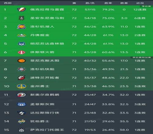 西部最新积分榜
